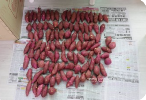 - 또한 수확한 고구마는 바로 먹기 보다 최소한 일주일 정도 후숙 후 먹어야 맛있습니다. 고구마를 수확한 후 상처가 난 부분이나 부패한 부분이 있다면 주변 고구마에 영향을 줄 수 있기 때문에 제거하시는게 좋습니다.