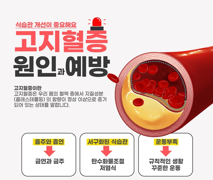 고지혈증은 심혈관 질환의 중요한 위험 요소로 작용할 수 있으며, 심근경색, 뇌졸중 등 심각한 건강 문제를 유발할 수 있습니다.