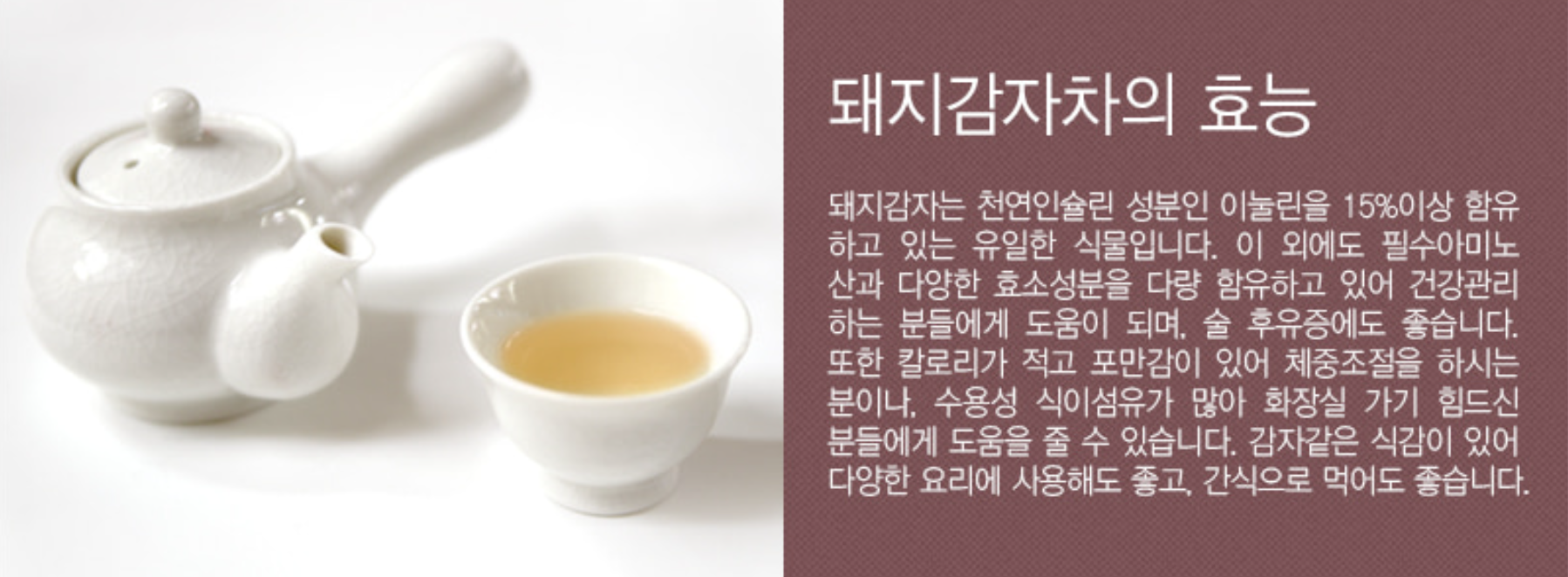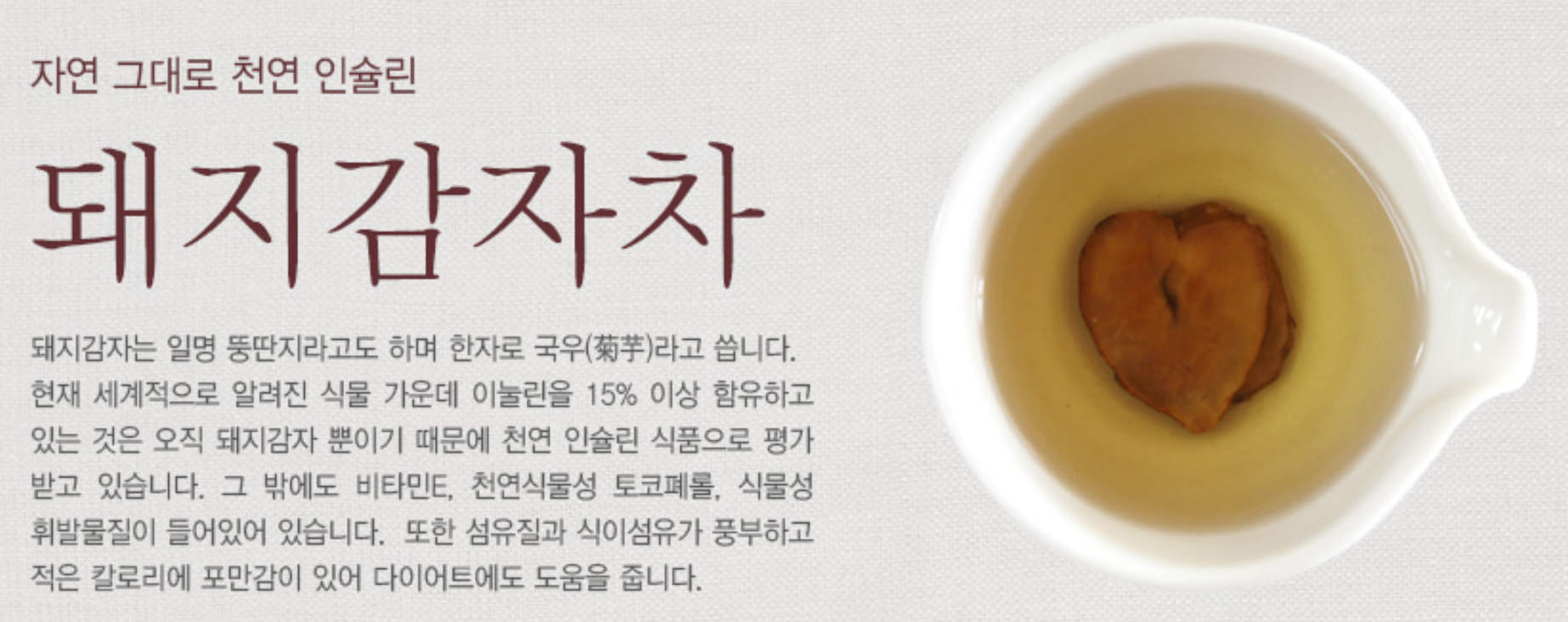 하여 돼지감자차에는 ‘뚱딴지차’라는 별명이 붙여졌습니다.