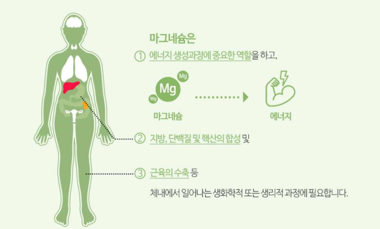 - 마그네슘은 심장의 리듬을 조절하는데 필요합니다.