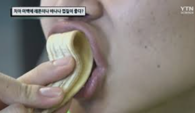 바나나 껍질 안쪽 부분을 치아에 마사지하듯이 문질러 주면 되는데, 바나나 껍질에는 구연산이 들어 있어서 노란 치아를 하얀 치아로 바꾸는는데 도움이 됩니다. 하지만 너무 자주 하시면 치아 마모를 일으킬 수 있으니 주의가 필요합니다.