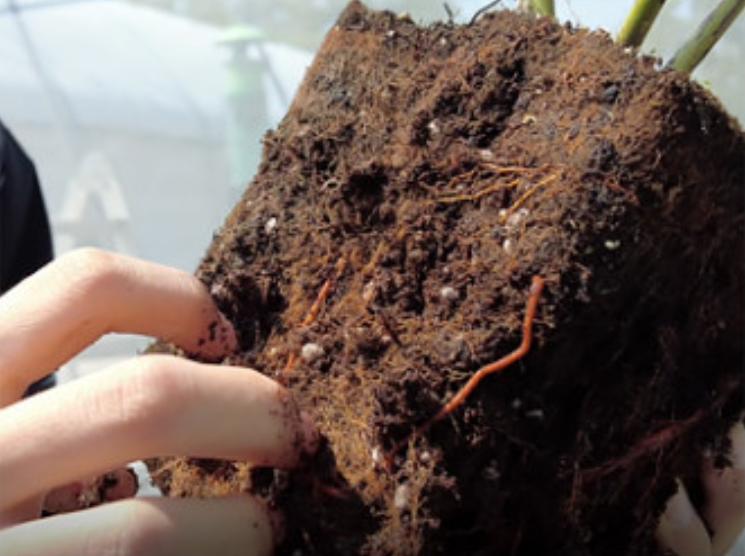 - 묘목을 옮길 때 뿌리가 다치지 않도록 주의하고, 뿌리가 너무 촘촘히 얽혀있다면 손으로 부드럽게 풀어줍니다. 장시간 포트안에서 뭉쳐진 뿌리를 풀어준 후 심으면 블루베리 묘목의 초기 활착에 도움이 됩니다.
