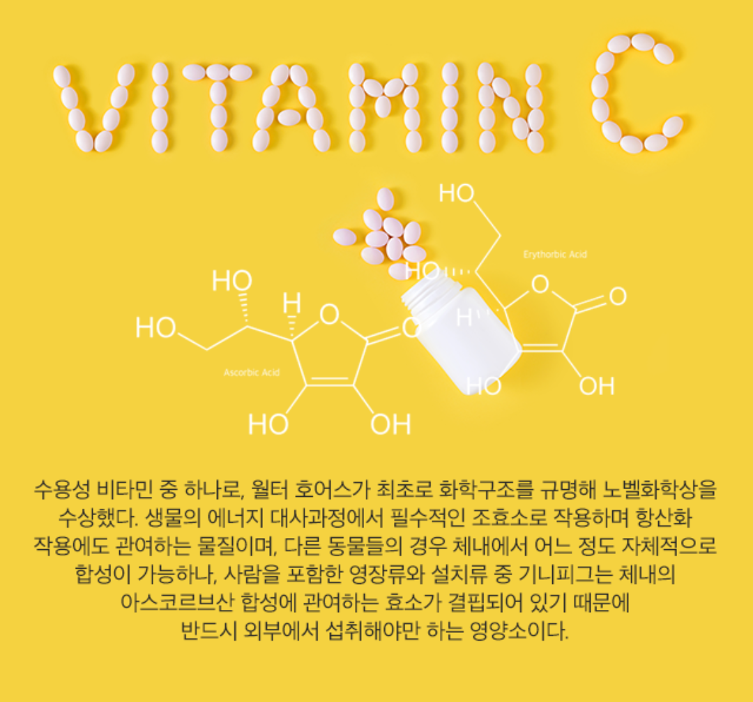 그러나 우리 몸은 비타민 C를 스스로 합성하지 못하기 때문에 식단이나 보충제를 통해 충분한 양을 섭취하는 것이 매우 중요합니다.
