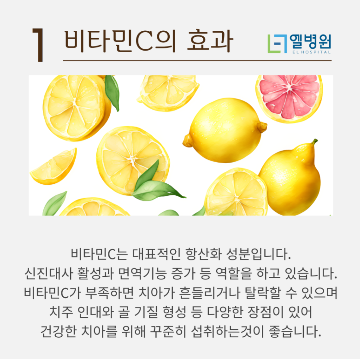 비타민 C는 우리 몸에서 중요한 역할을 하는 필수 영양소입니다. 항산화 작용을 통해 피부 건강을 지켜주고, 면역력을 강화하며, 콜라겐 합성에 도움을 줍니다.