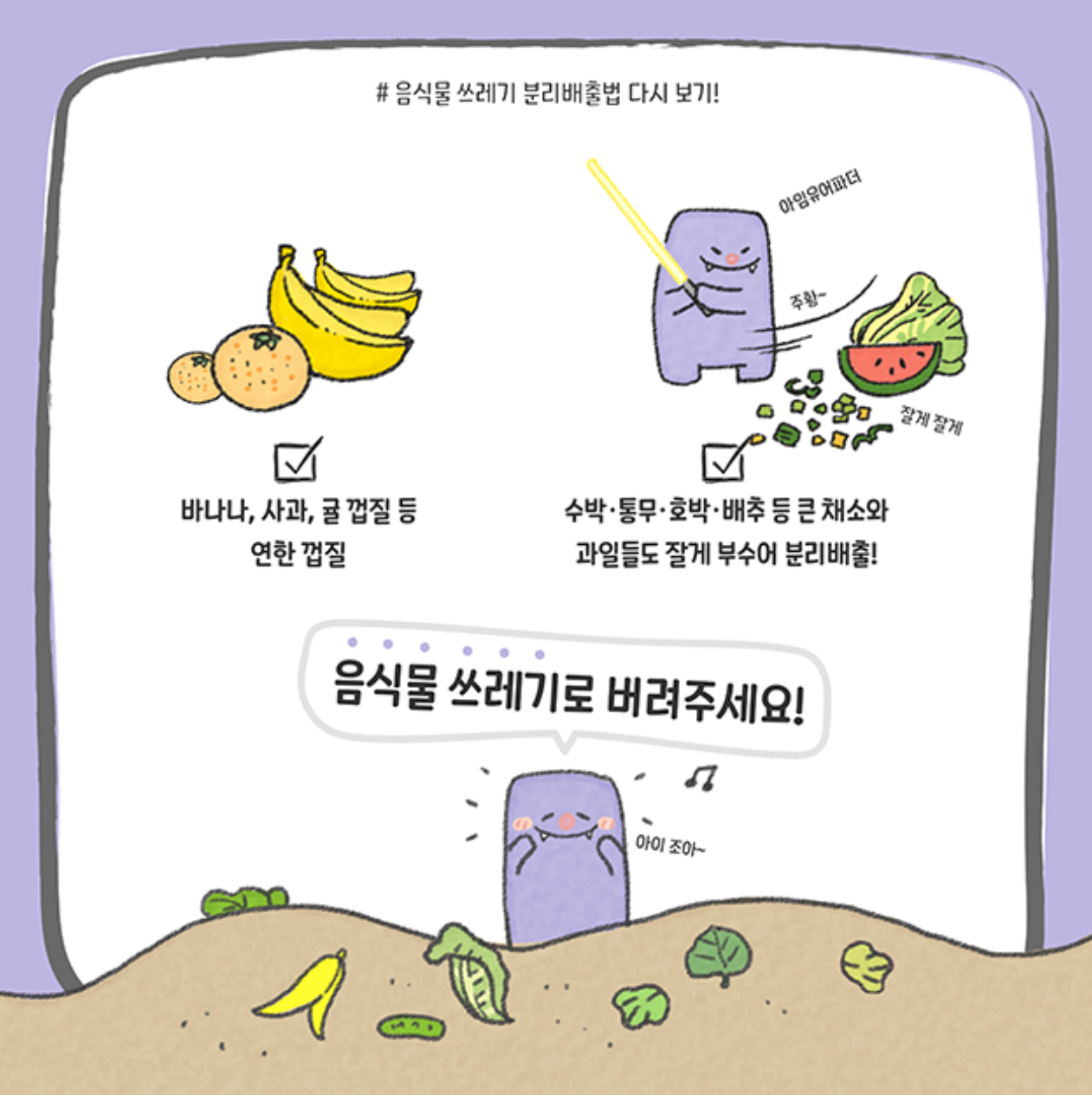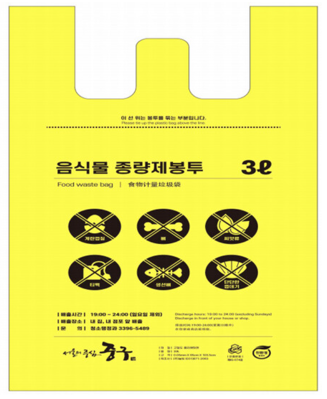예를 들어, 서울의 25개 자치구 중 중구, 종로구, 양천구 등 10개 구는 최근 음식물쓰레기 종량제 봉투에 '음식물 쓰레기 안내' 글씨 대신 그림을 넣기 시작했다고 합니다.