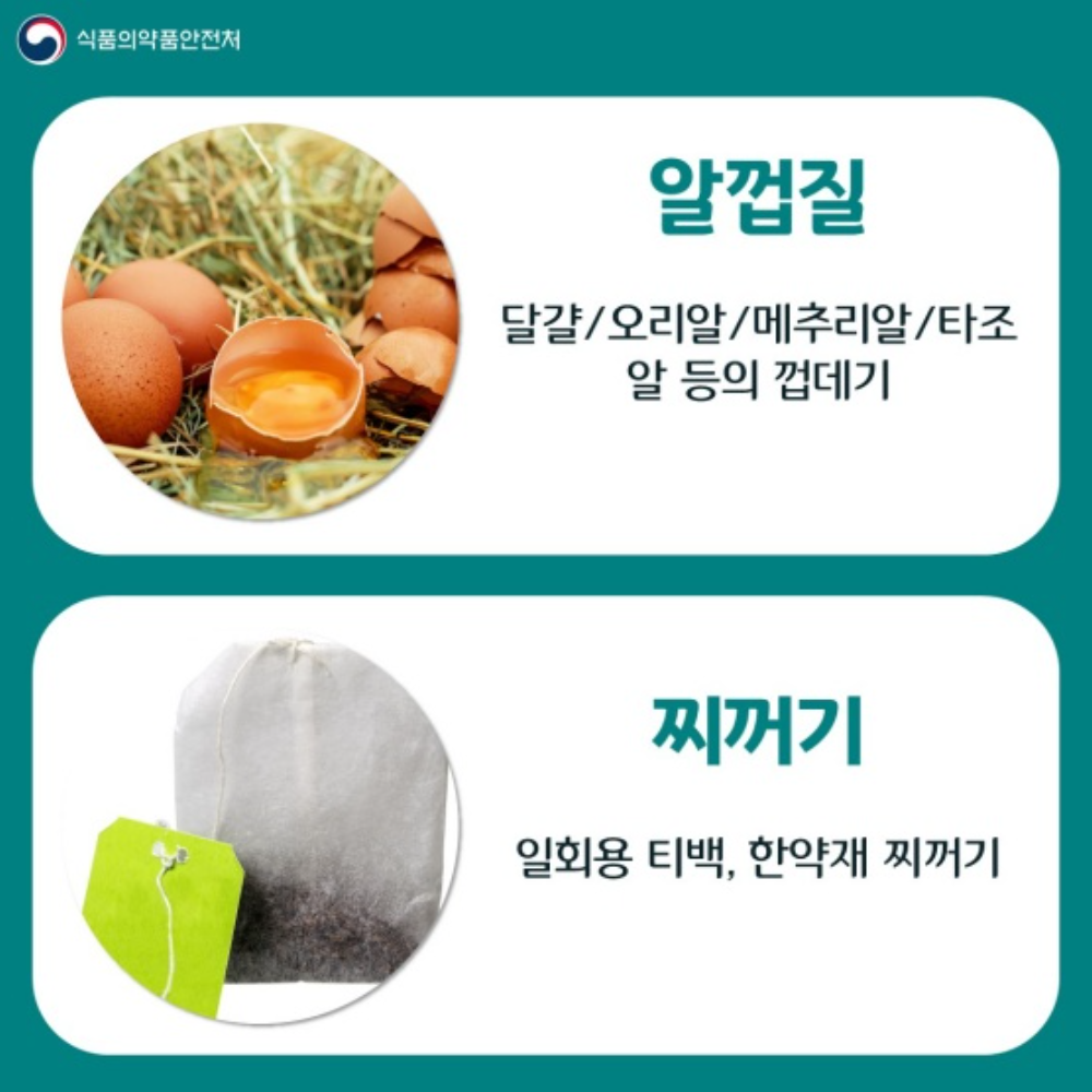 - 찌꺼기 : 일회용 티백, 한약재 찌꺼기