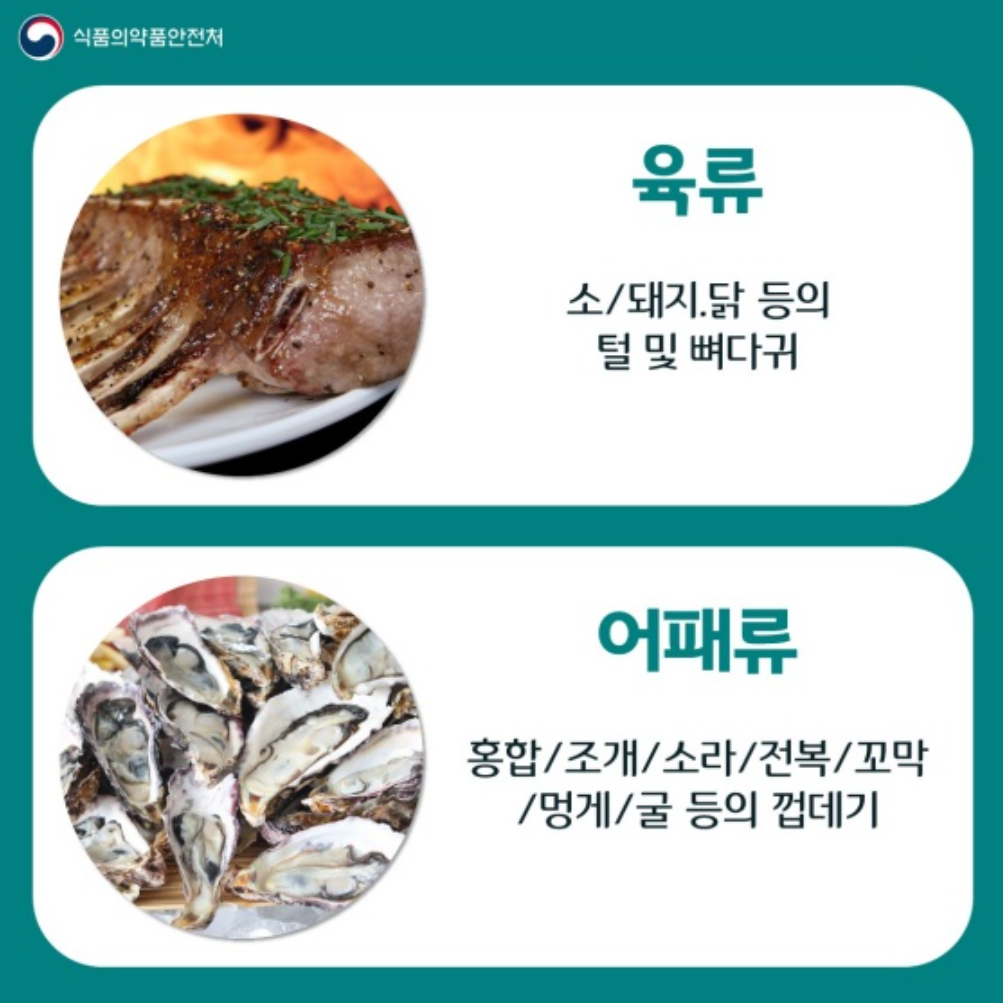 - 육류 : 소/돼지.닭 등의 털 및 뼈다귀