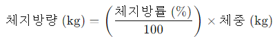 | 체지방량 | 신체에서 실제 지방의 무게 | kg 또는 lbs | 체중 × 체지방률 ÷ 100 |