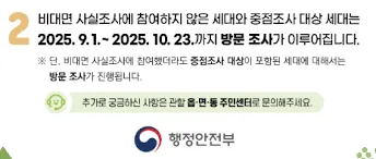 - 세대주가 반드시 확인해야 하며, 미참여 시 가구 전체가 방문조사 대상이 됩니다.