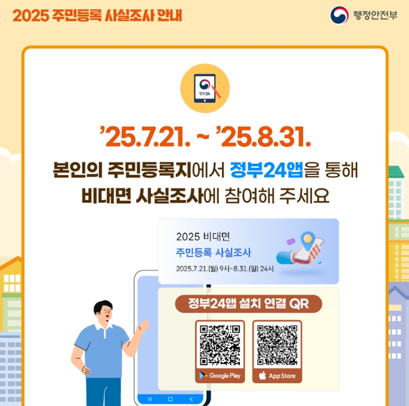 | 비대면 조사 | 2025년 7월 21일 ~ 8월 31일 | 정부24 앱을 통한 온라인 참여 |