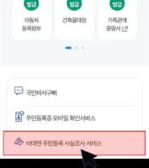 ① 정부24 앱 실행 후, 주민등록 사실조사 배너 클릭